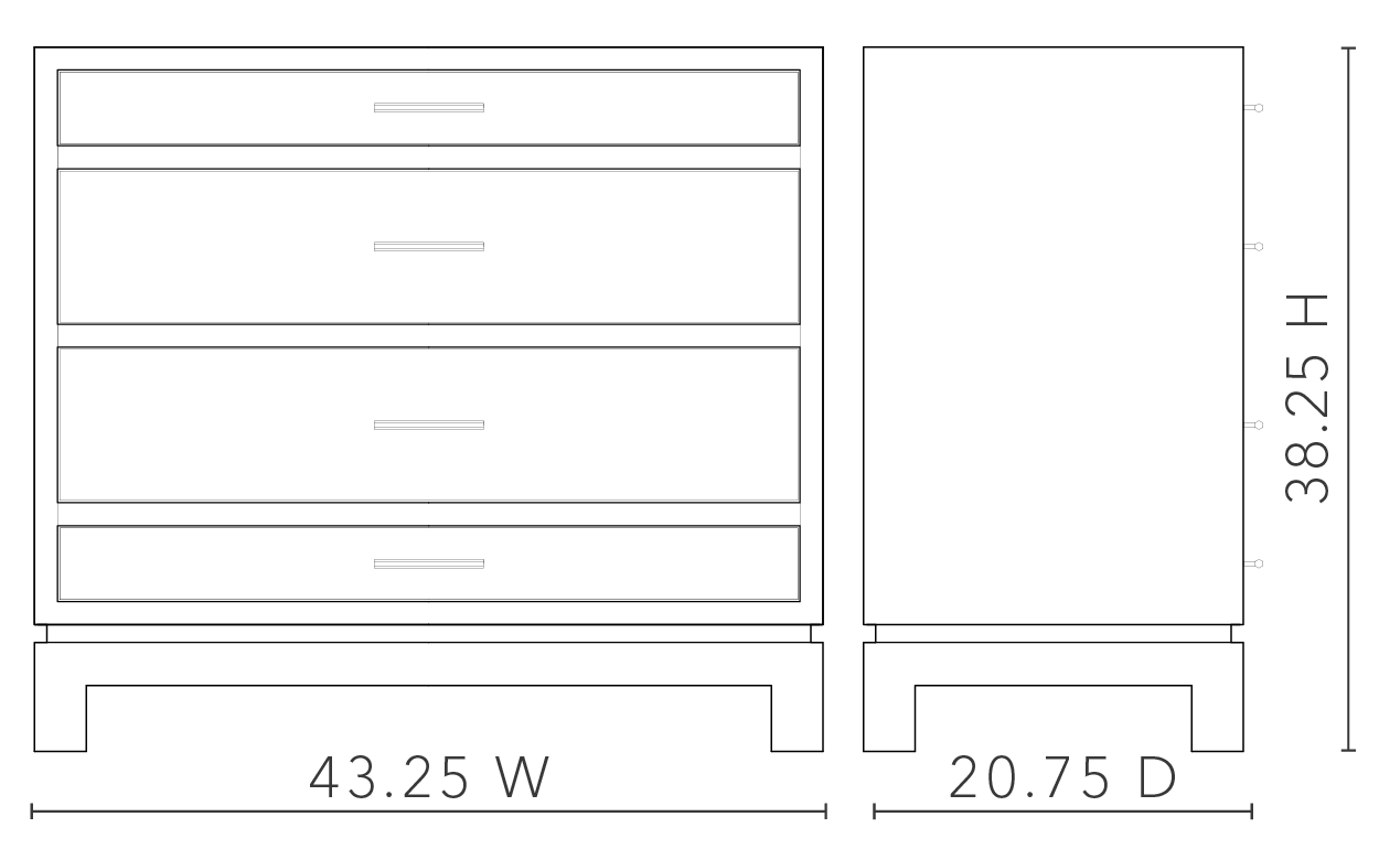Drawer Dimensions: Interior – 39.5W x 14.5D (2.5H Top / 5.25H Middle / 2.5H Bottom); Exterior – 40.5W x 4H (Top), 8.25H (Middle), 4H (Bottom)