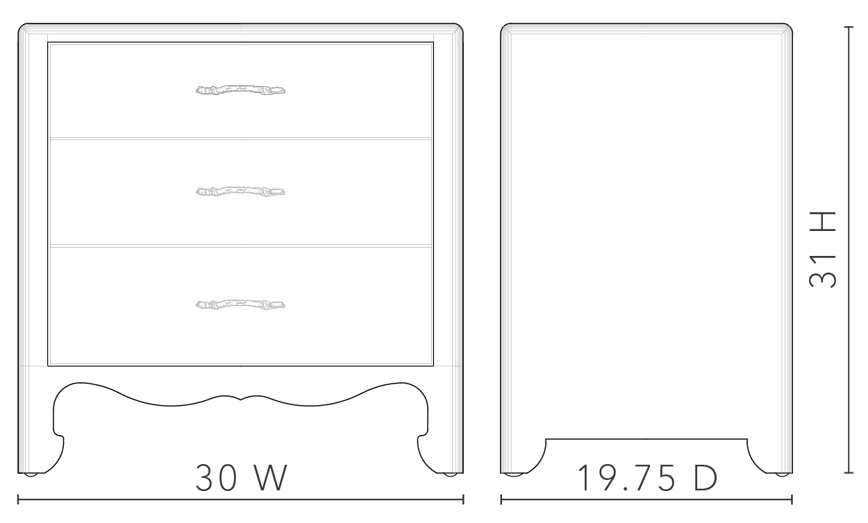 The Gianna 3-Drawer End Table exudes feminine charm and delicate beauty. Meticulously wrapped in clear lacquered grasscloth, its natural texture is accentuated with a subtle sheen, offering an elegant yet organic feel. Graceful detailing on the trim and feet adds a touch of artistry, while polished brass hardware introduces a refined contrast. With three spacious drawers, the Gianna offers ample storage without compromising on style. Available in Sand White and Spring Green, this end table effortlessly blends softness, sophistication, and timeless design.