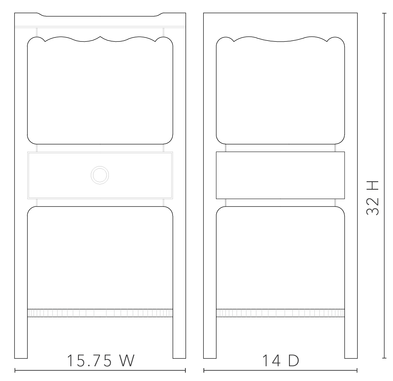 Dimensions: 15.75W x 14D x 32H