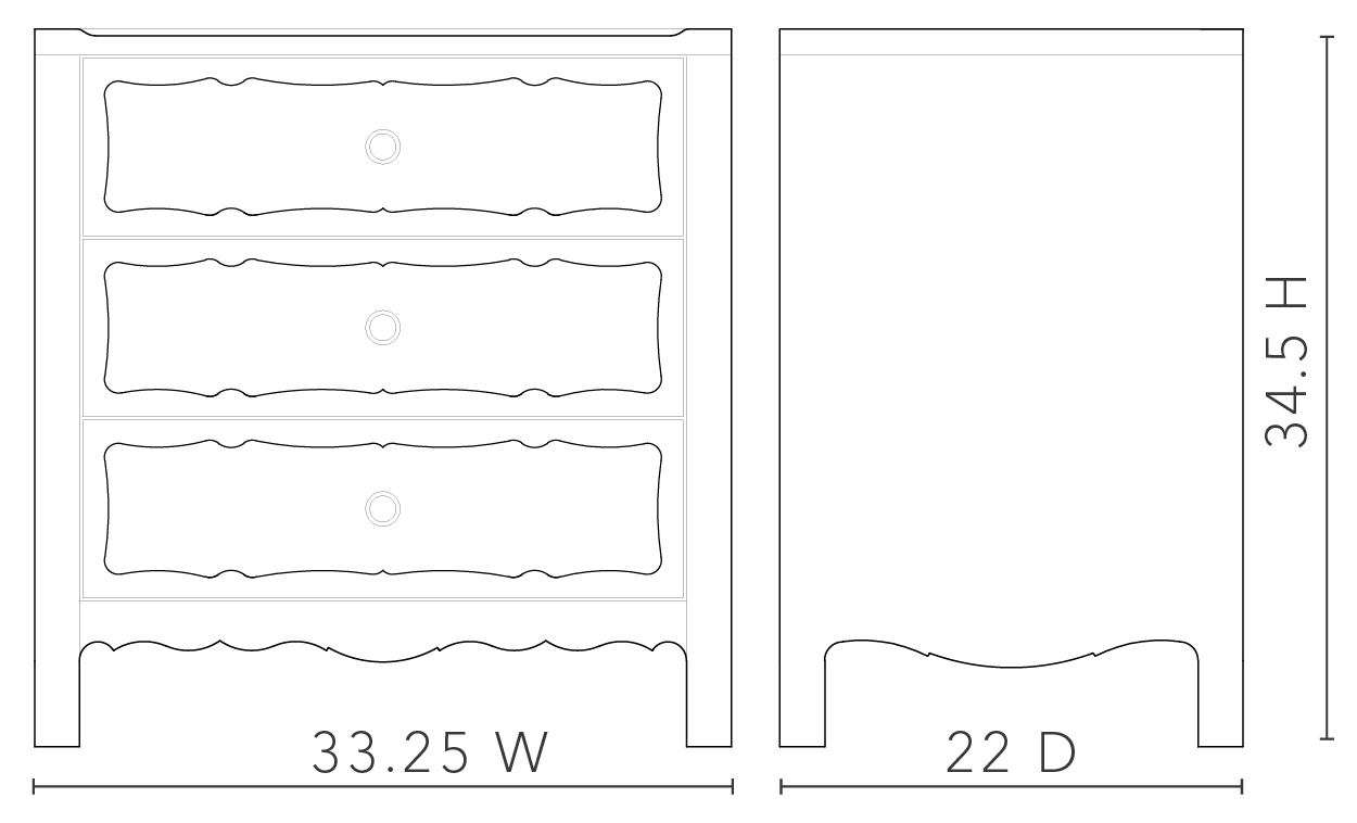 The Sara Collection brings a touch of vintage charm with its provincial-inspired detailing and graceful silhouette. Crafted from lacquered acacia wood, each piece features drawer fronts adorned with delicate raised paneling that echoes classic European cabinetry. Softly curved or scalloped aprons along the base enhance the romantic feel, adding a sense of movement and refinement. With its blend of historical influence and clean, modern finishing, the Sara Collection feels timeless, feminine, and effortlessly livable.