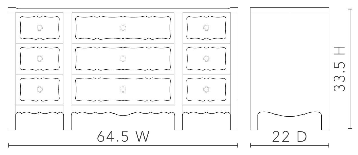 The Sara Collection brings a touch of vintage charm with its provincial-inspired detailing and graceful silhouette. Crafted from lacquered acacia wood, each piece features drawer fronts adorned with delicate raised paneling that echoes classic European cabinetry. Softly curved or scalloped aprons along the base enhance the romantic feel, adding a sense of movement and refinement. With its blend of historical influence and clean, modern finishing, the Sara Collection feels timeless, feminine, and effortlessly livable.
